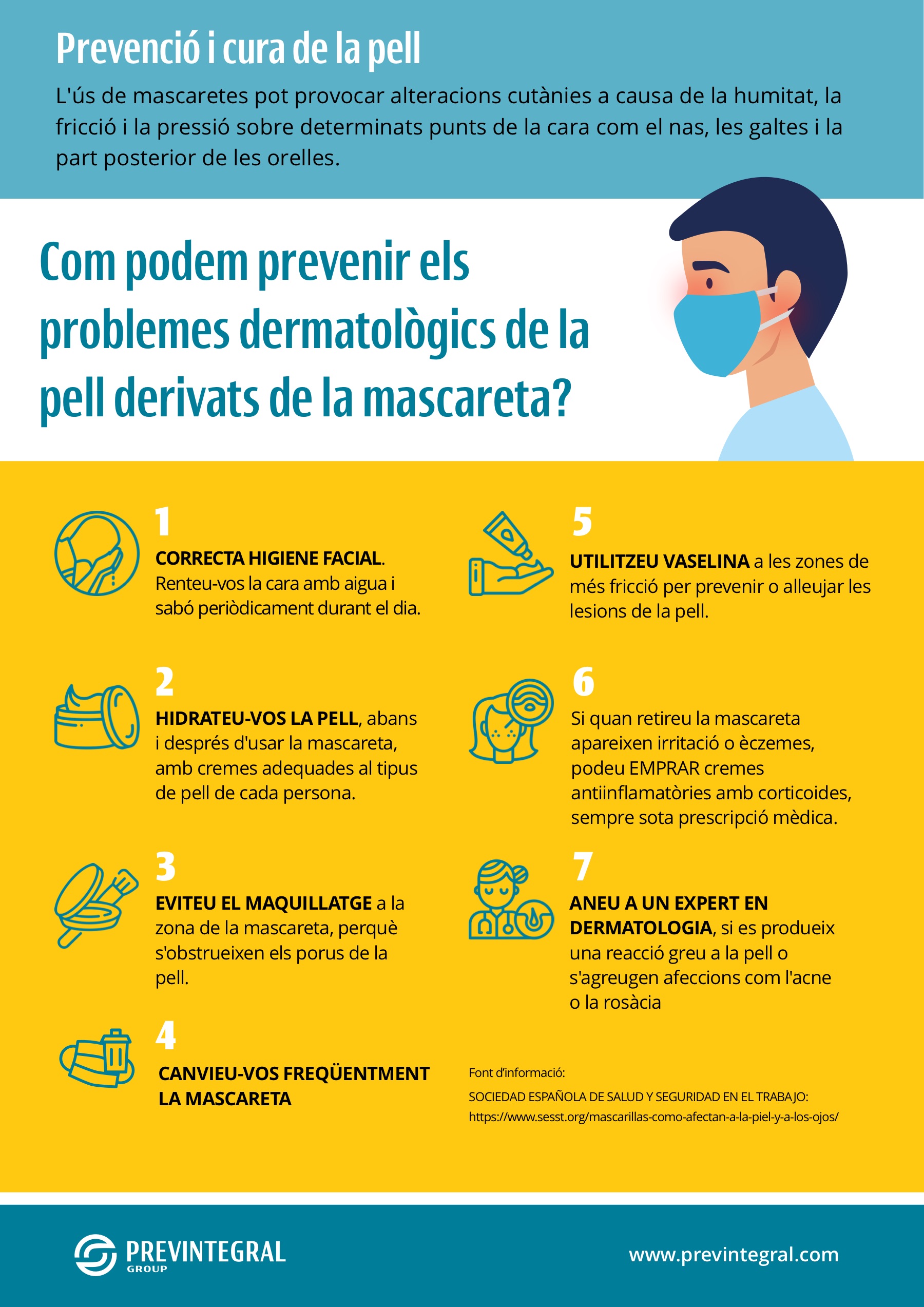 Per això, des de Previntegral Group recollim un seguit de recomanacions per evitar possibles problemes dermatològics per l’ús de les mascaretes.