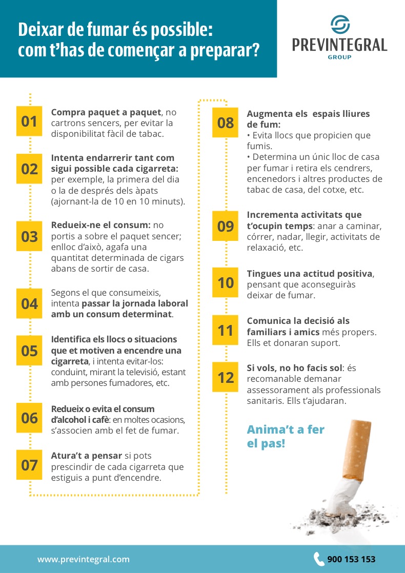A continuació et facilitem un decàleg que t’ajudarà a decidir-te i a preparar-te perquè abandonis l’hàbit tabàquic. Si estàs pensant a deixar de fumar, FELICITATS! És la millor decisió, tant per a tu com per a les persones del teu voltant.